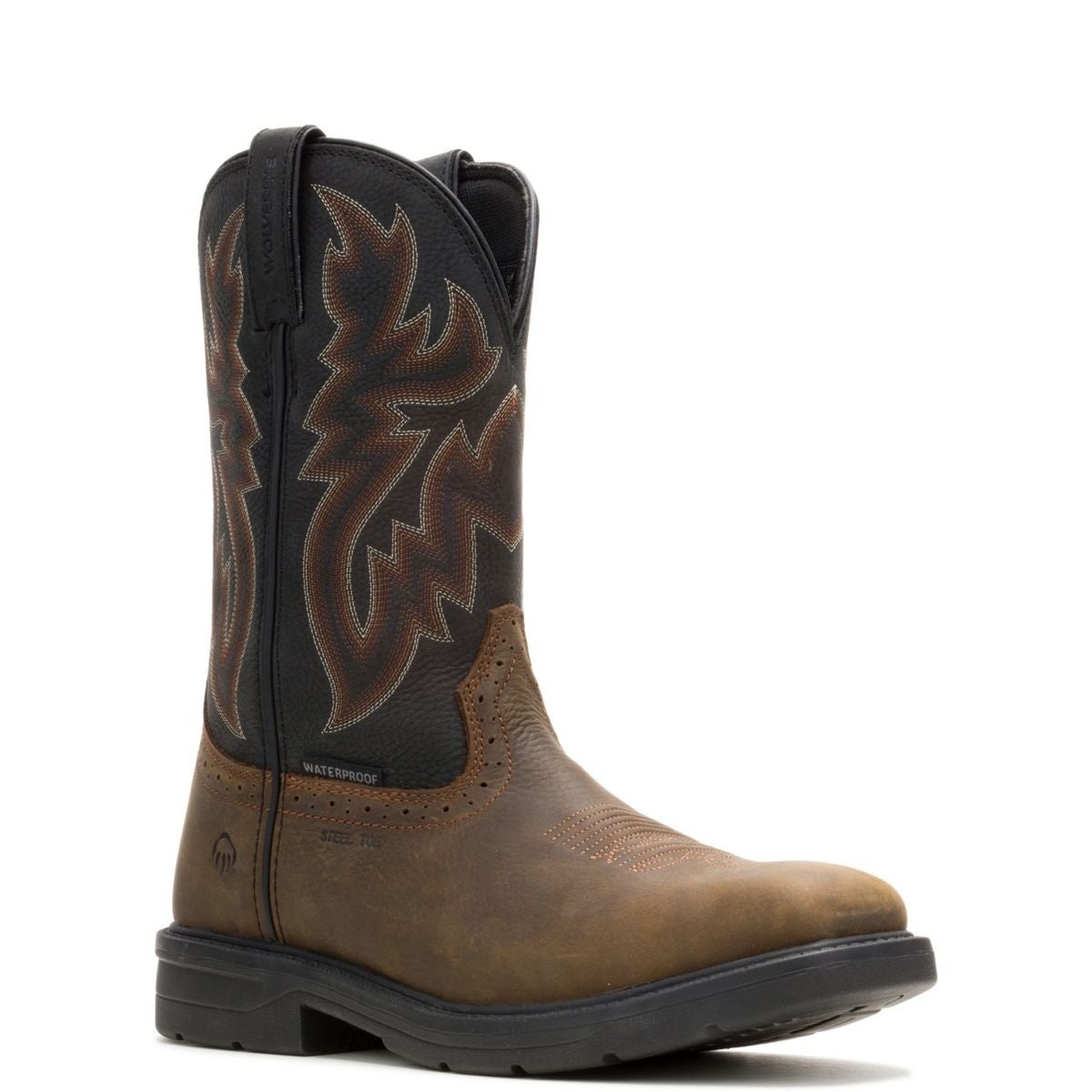 Built for long days and rough jobs, these pull-on Wellington boots pair western style with jobsite-ready protection. The waterproof oiled nubuck leather upper helps keep feet dry while the rubber cupoutsole adds dependable traction. Inside, a moisture-managing lining and removable cushioned footbed support comfort from clock-in to clock-out. Finished with a steel safety toe and supportive shank for added confidence on the worksite.